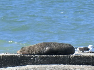 今日はラッキーなことにオットセイ(Seal)が2頭、海岸から少し離れた堤防上にお休み中でした。